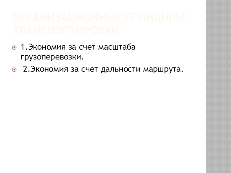 Слайд 12ОРГАНИЗАЦИОННЫЕ ПРИНЦИПЫ ТРАНСПОРТИРОВКИ