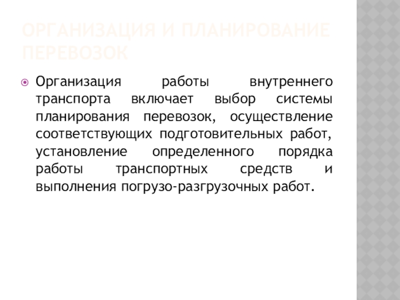 планирования перевозок, осуществление соответствующих подготовительных работ, установление определенного порядка работы
