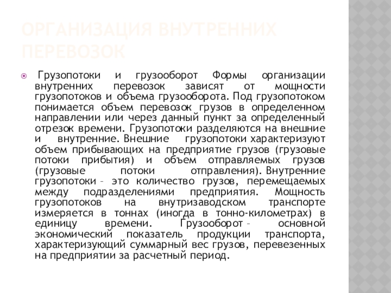 Грузопотоки и грузооборот Формы организации внутренних перевозок зависят