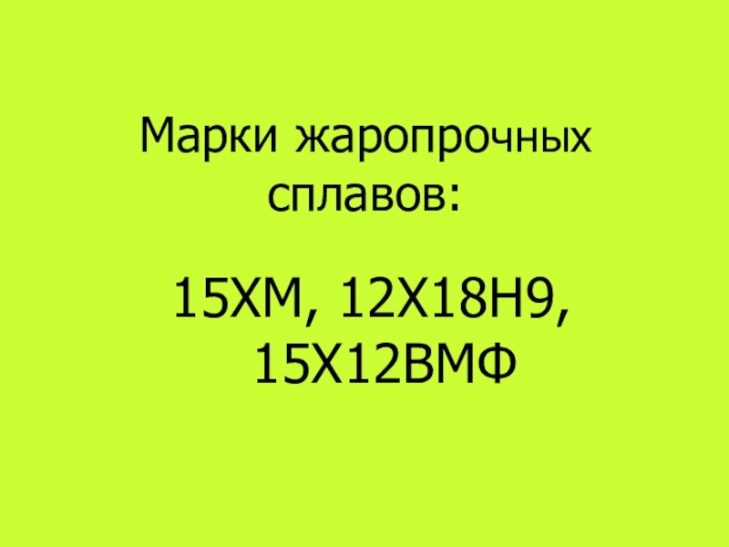 Марки жаропрочных сплавов:15ХМ, 12Х18Н9, 15Х12ВМФ