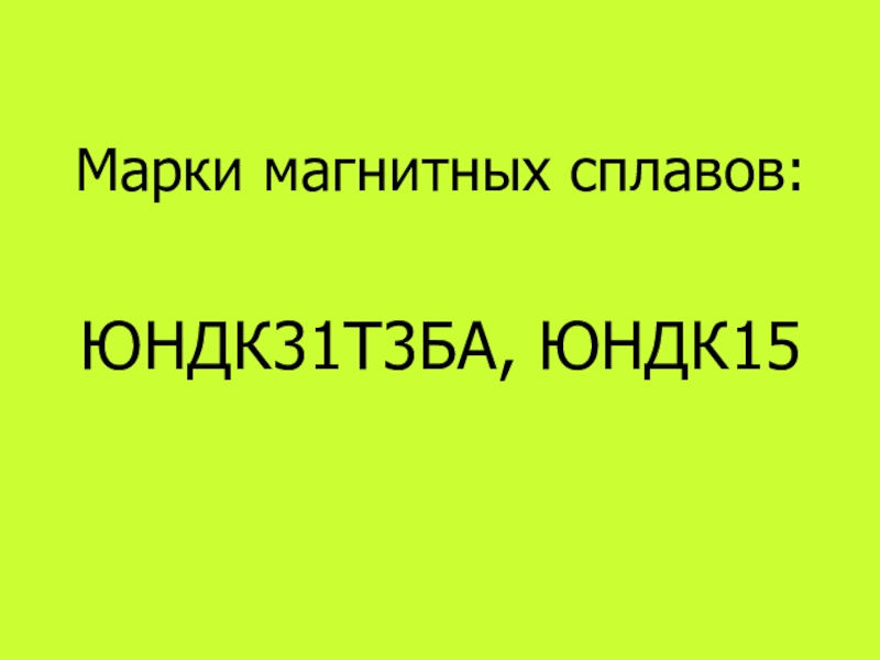Марки магнитных сплавов:ЮНДК31Т3БА, ЮНДК15