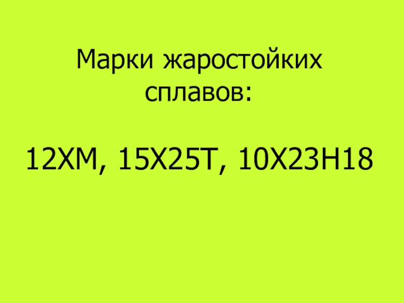 Марки жаростойких сплавов:12ХМ, 15Х25Т, 10Х23Н18