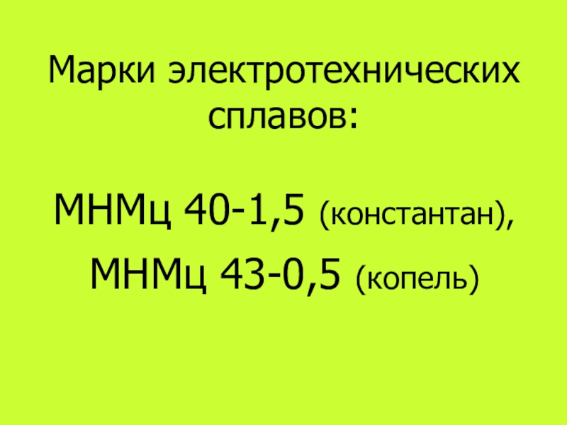 Марки электротехнических сплавов:МНМц 40-1,5 (константан),МНМц 43-0,5 (копель)