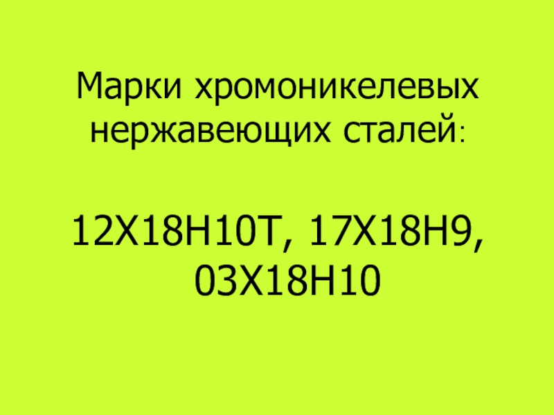 Слайд 3Марки хромоникелевых нержавеющих сталей: