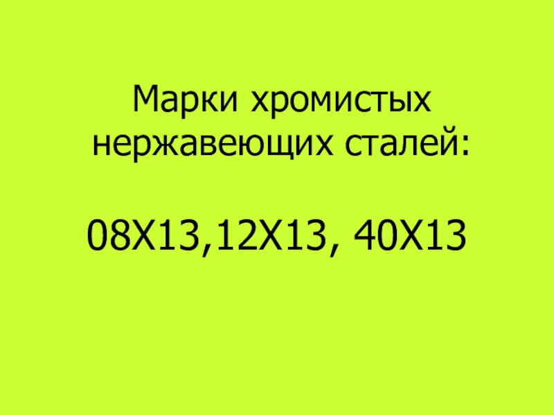 Марки хромистых нержавеющих сталей:08Х13,12Х13, 40Х13