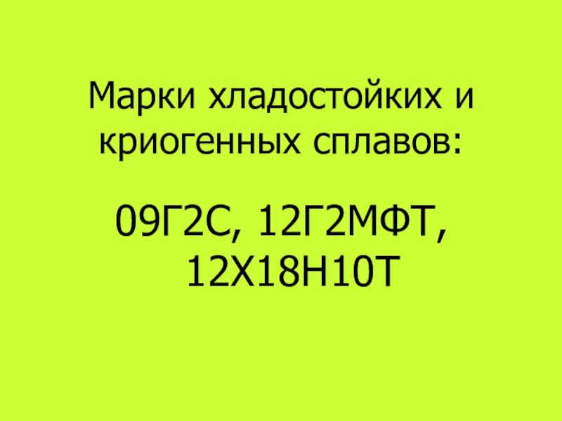 Марки хладостойких и криогенных сплавов:09Г2С, 12Г2МФТ, 12Х18Н10Т