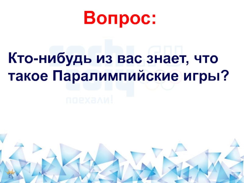 Вопрос: Кто-нибудь из вас знает, что такое Паралимпийские игры?