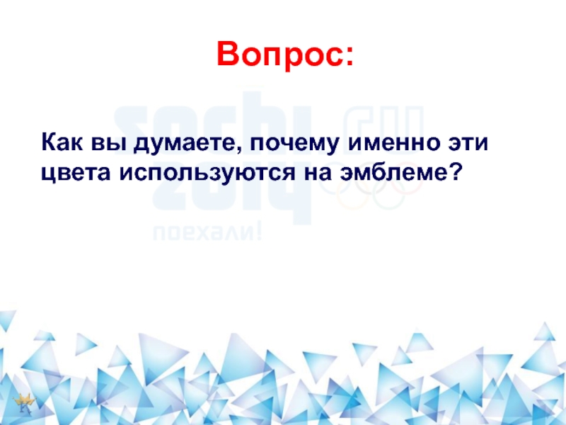 Вопрос:  Как вы думаете, почему именно эти цвета используются на эмблеме?