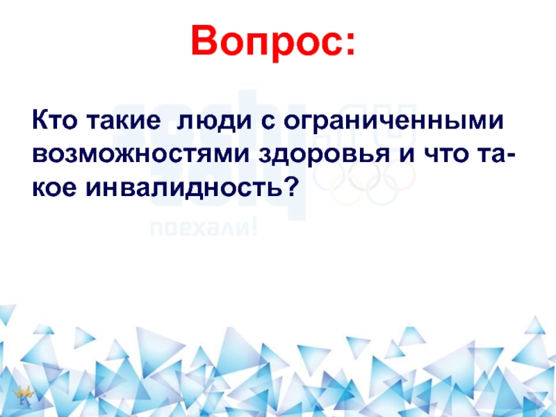 Кто такие люди с ограниченными возможностями здоровья и что та-кое инвалидность? Вопрос: