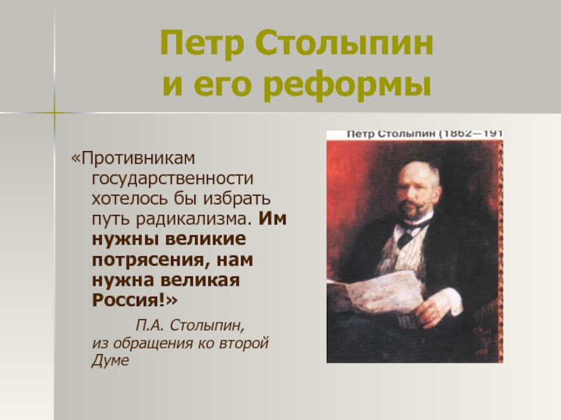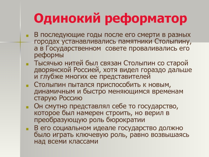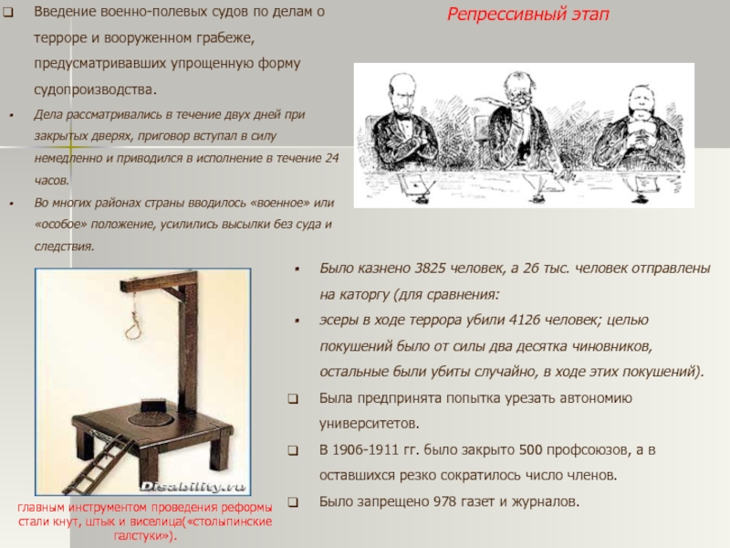 главным инструментом проведения реформы стали кнут, штык и виселица(«столыпинские галстуки»).