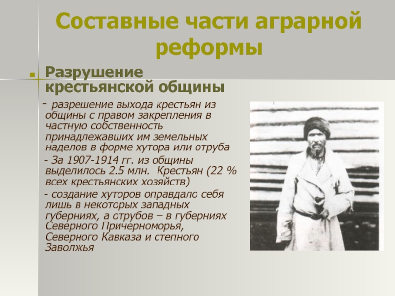 столыпинской свободный выход аграрной реформе крестьян из общины