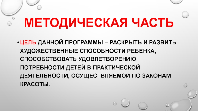 Цель данной программы – раскрыть и развить художественные способности ребенка,