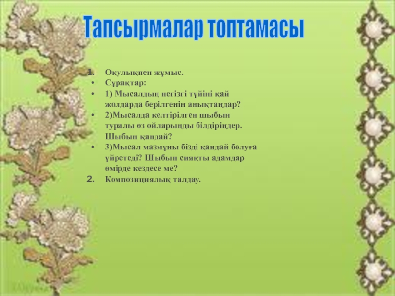 «Екі шыбын» мысалының идеялық мазмұнын
