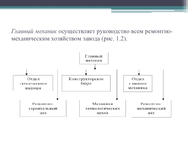 Слайд 6Главный механик осуществляет руководство всем ремонтно-механическим хозяйством завода (рис. 1.2).