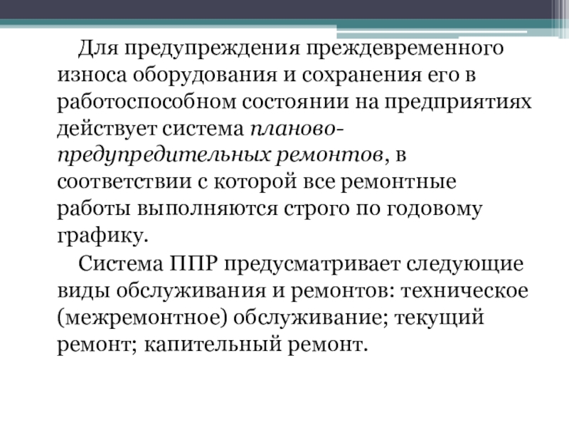 Слайд 10Для предупреждения преждевременного износа оборудования и сохранения его в работоспособном