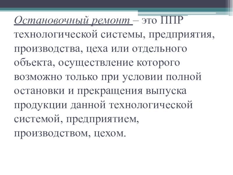 Слайд 14Остановочный ремонт – это ППР технологической системы, предприятия, производства, цеха