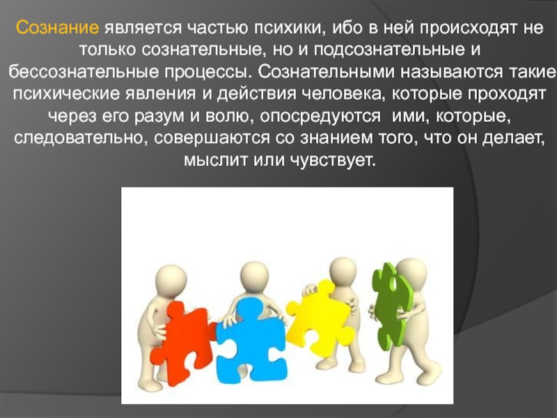 Слайд 3Сознание является частью психики, ибо в ней происходят не только