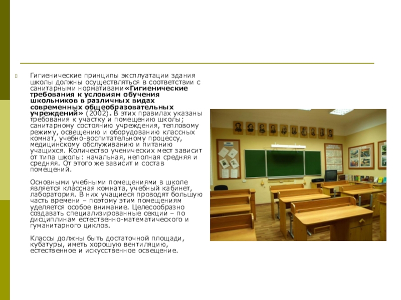 Слайд 7Гигиенические принципы эксплуатации здания школы должны осуществляться в соответствии с