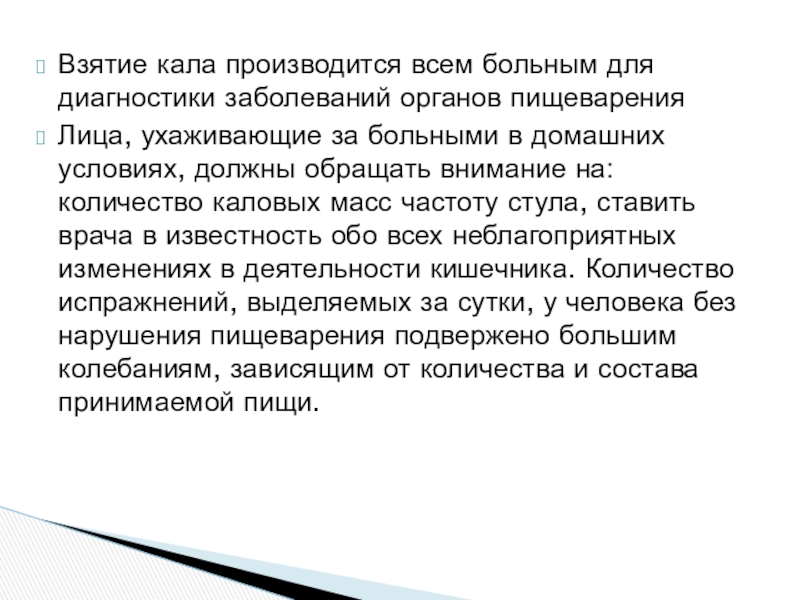 Слайд 13Взятие кала производится всем больным для диагностики заболеваний органов пищеварения