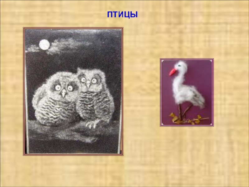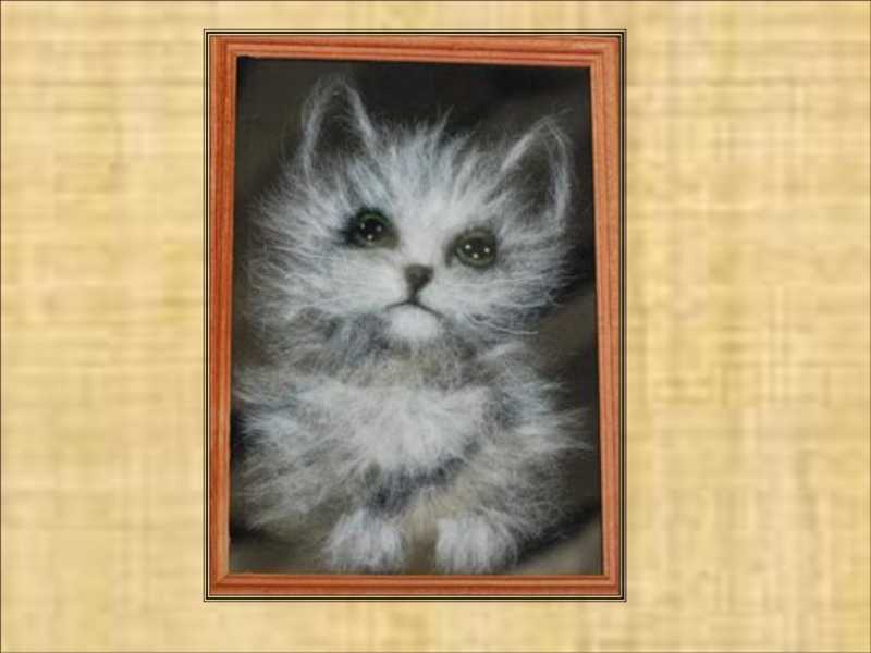 4. Нужно стараться волокна пуха сразу класть в нужном направлении штриха. Чтобы придать тополиному пуху нужное направление, следует как бы процарапать его иглой, расчесывая и вытягивая, а затем вновь прибить его пальцами. Подчистку края изображения можно также сделать иглой, пододвигая пух до нужной линии.