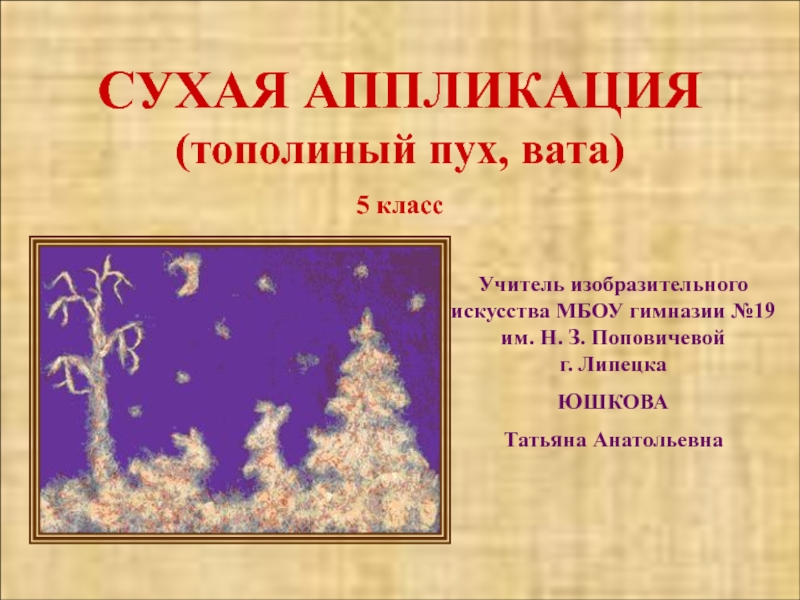 Учитель изобразительного искусства МБОУ гимназии №19 им. Н. З. Поповичевой