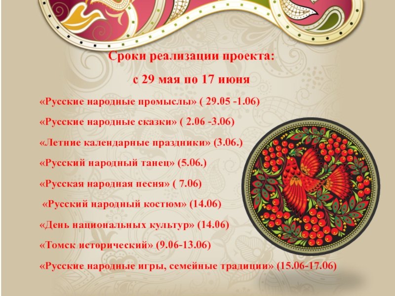праздники» (3.06.)«Русский народный танец» (5.06.)