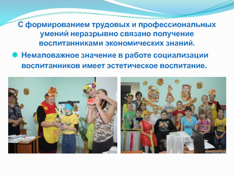 Слайд 11С формированием трудовых и профессиональных умений неразрывно связано получение воспитанниками