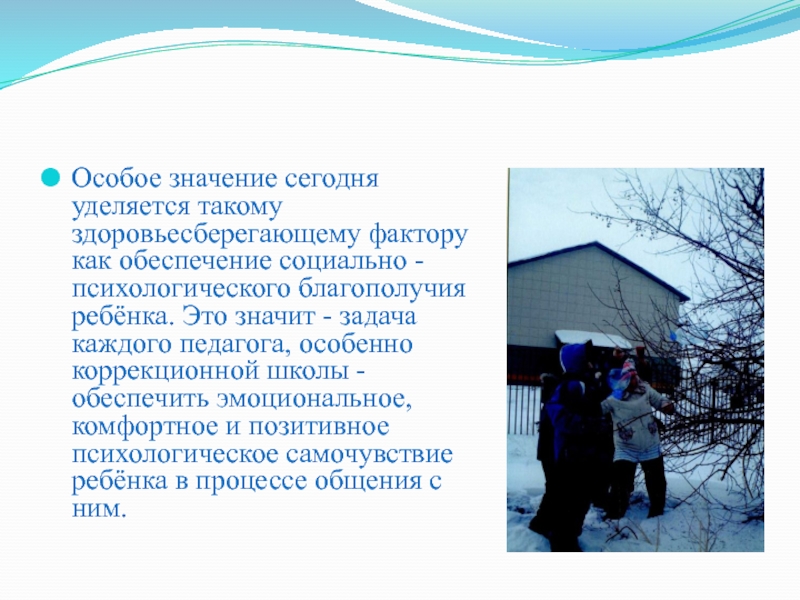 особенно коррекционной школы - обеспечить эмоциональное, комфортное и позитивное психологическое самочувствие ребёнка в процессе общения с ним.