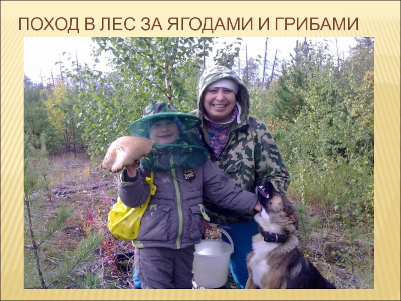 Слайд 2ПОХОД В ЛЕС ЗА ЯГОДАМИ И ГРИБАМИ