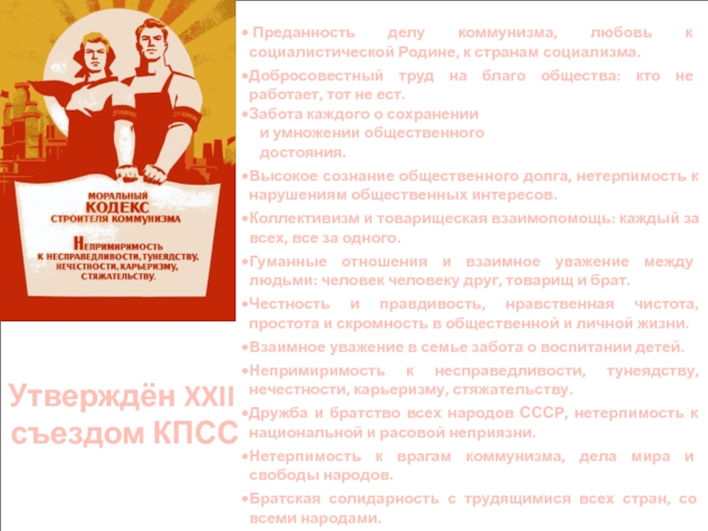Дружба и братство всех народов СССР, нетерпимость к национальной и расовой неприязни.