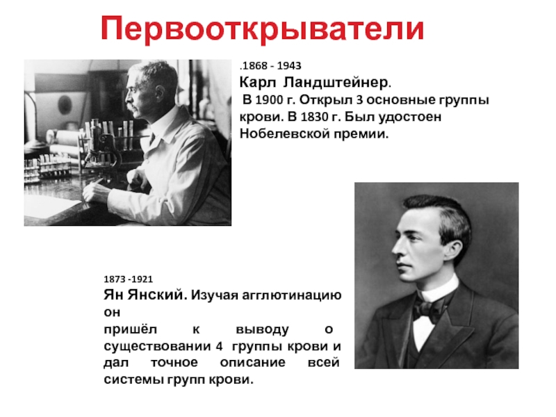 В 1900 г. Открыл 3 основные группы крови. В 1830 г. Был удостоен Нобелевской премии.