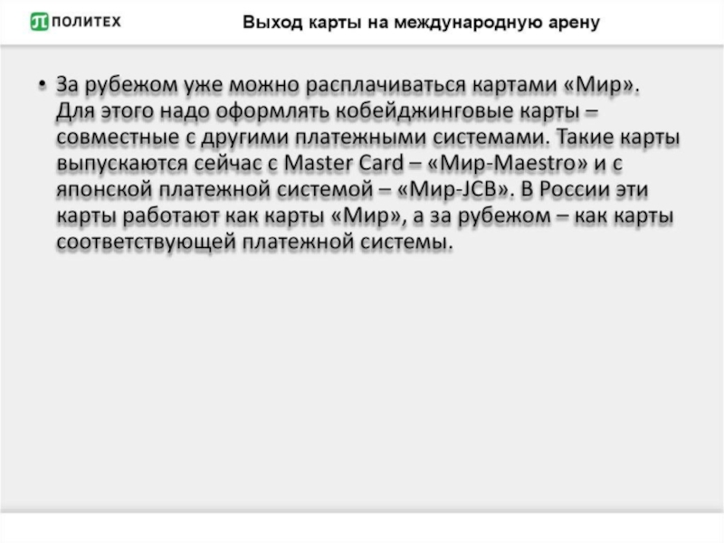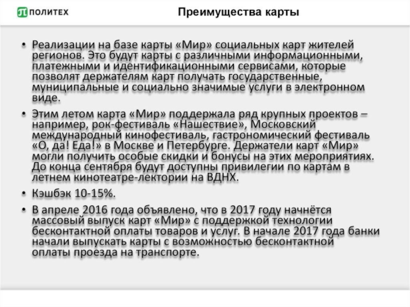 Слайд 6Плюсы карты «Мир»