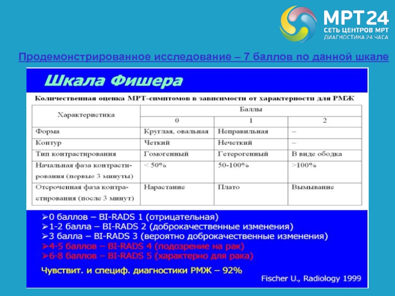 Слайд 70Продемонстрированное исследование – 7 баллов по данной шкале