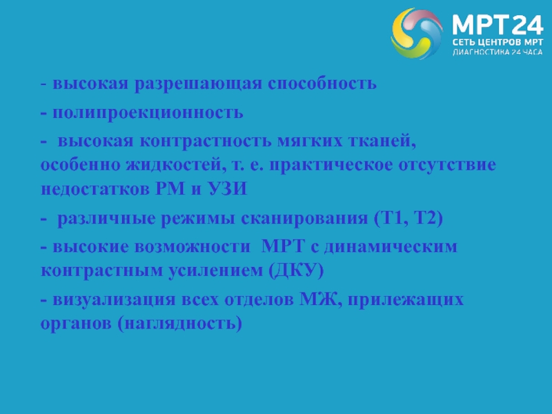 - высокие возможности МРТ с динамическим контрастным усилением (ДКУ)