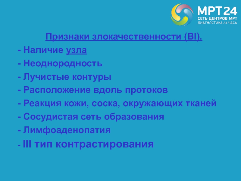 Слайд 54Признаки злокачественности (Bl).
