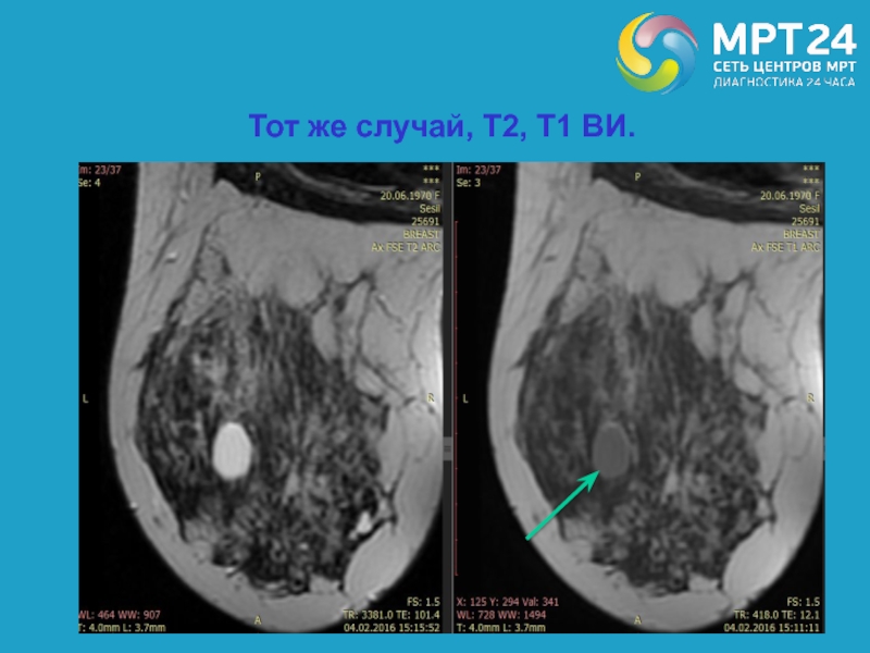 Слайд 72Тот же случай, РМЖ (Т1 FS +С)