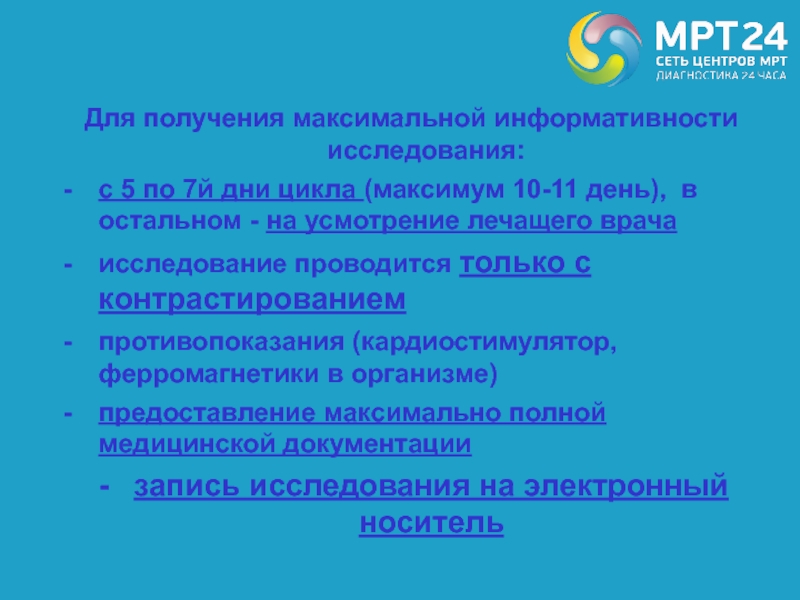 Для получения максимальной информативности исследования: