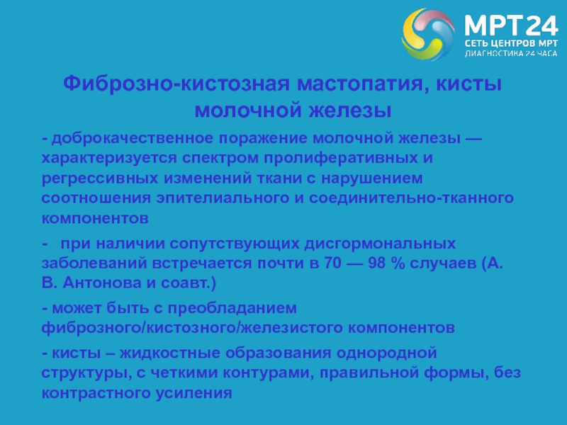 Слайд 83Фиброзно-кистозная мастопатия, кисты молочной железы