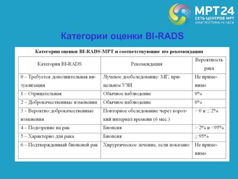 большого количества заболеваний и схожести лучевых симптомов невозможно), а на определении степени риска рака, что отражается в формулируемой категории.