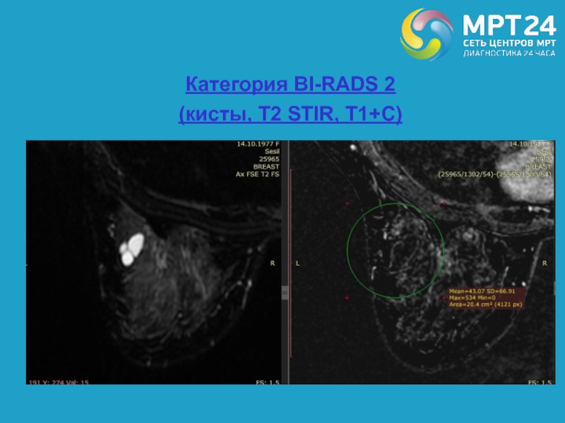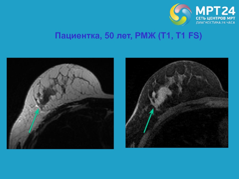 Слайд 71Пациентка, 50 лет, РМЖ (Т1, Т1 FS)