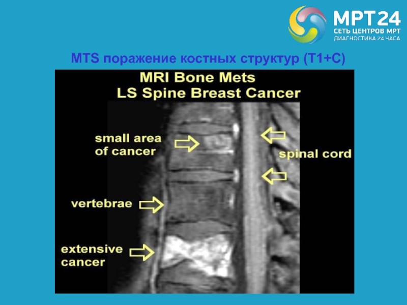 Слайд 76MTS поражение костных структур (Т1+С)