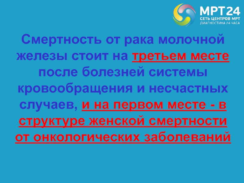 Смертность от рака молочной железы стоит на третьем месте после