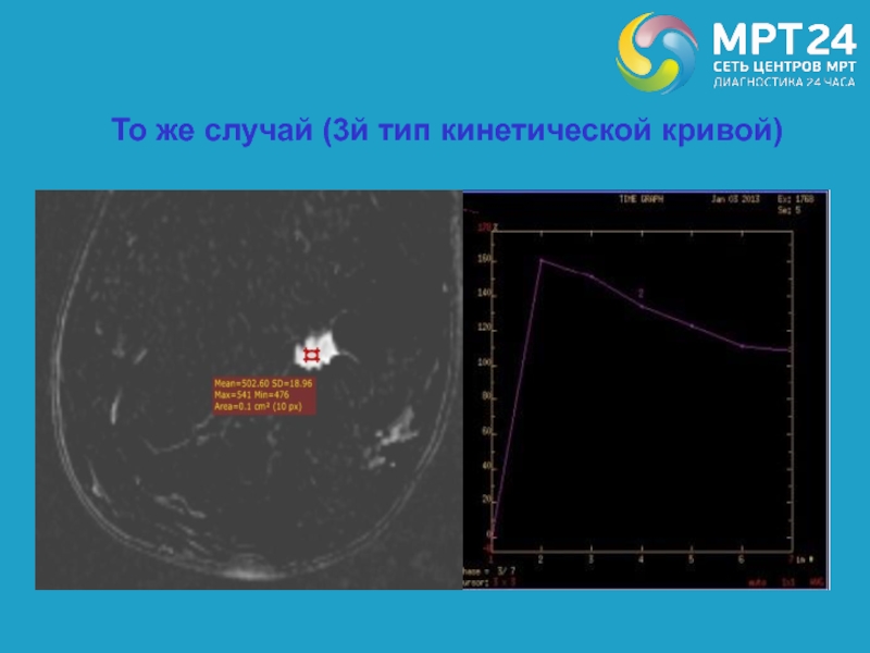 Слайд 64I тип - кривая постоянного роста МР-сигнала, характерна для ДНО,