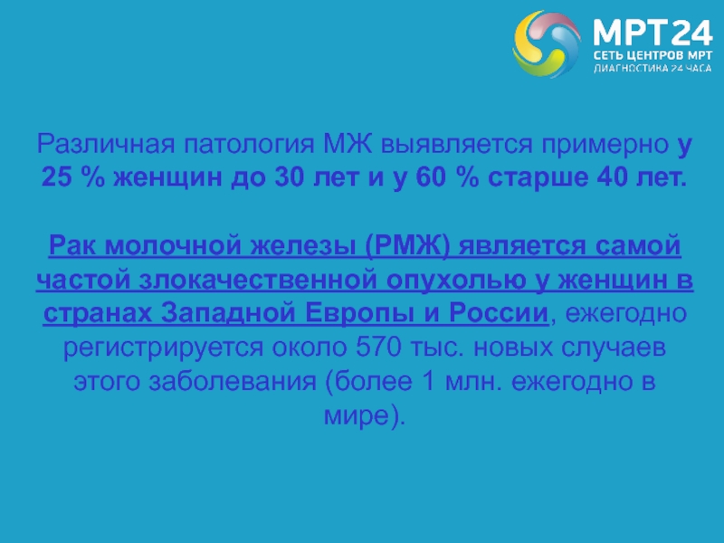 Различная патология МЖ выявляется примерно у 25 % женщин до