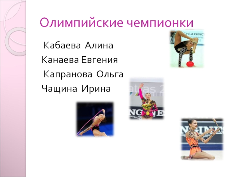 Олимпийские чемпионки Кабаева АлинаКанаева Евгения Капранова ОльгаЧащина Ирина