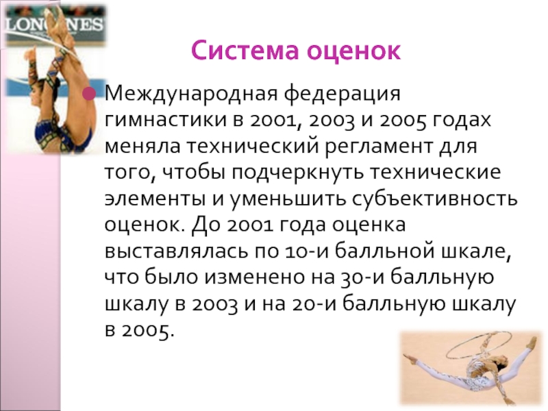 Система оценок Международная федерация гимнастики в 2001, 2003 и 2005
