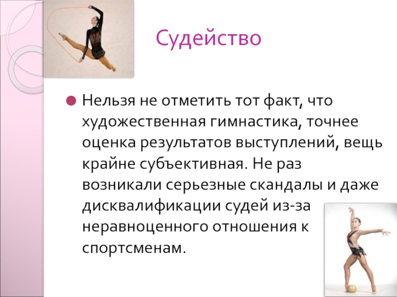 Нельзя не отметить тот факт, что художественная гимнастика, точнее оценка