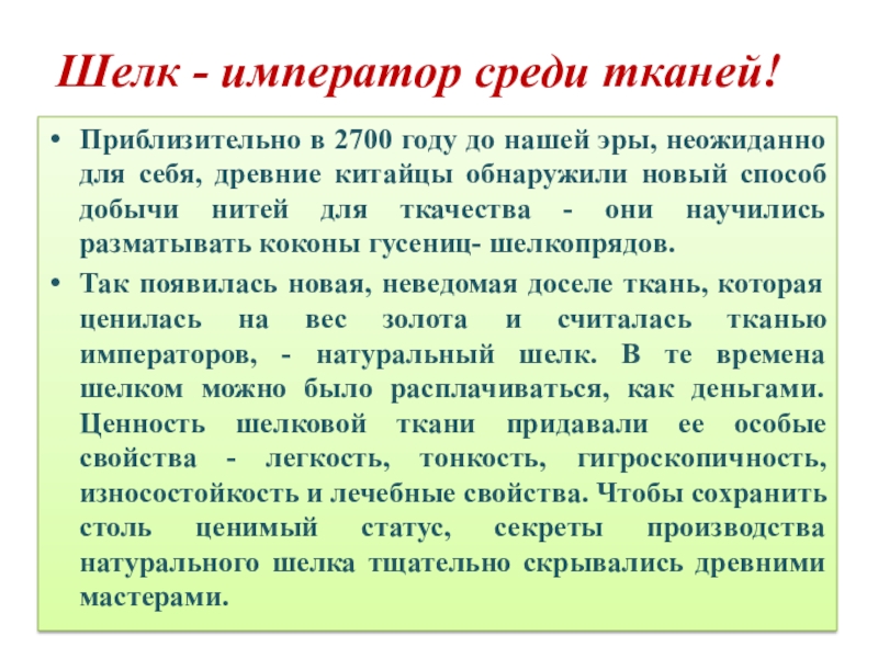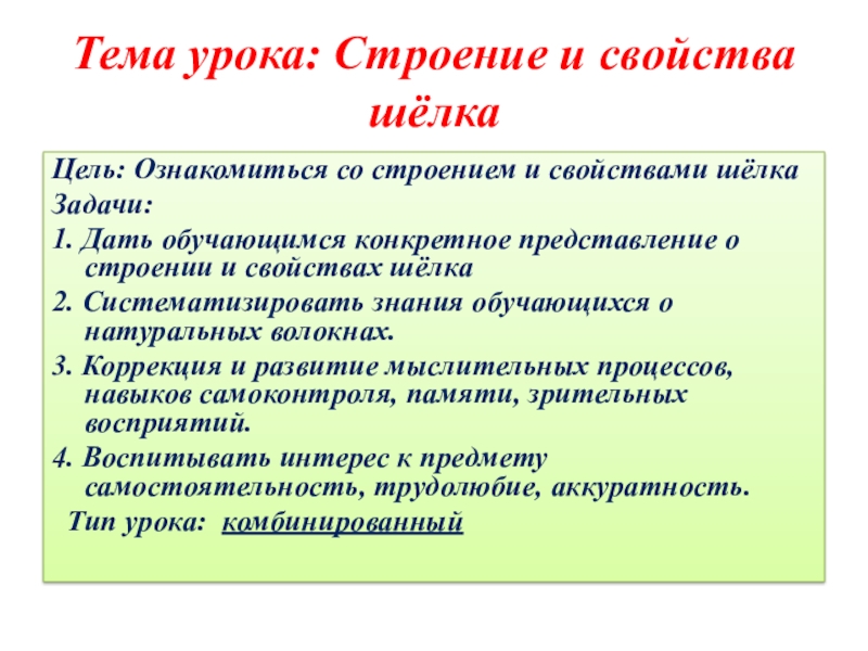 шёлка2. Систематизировать знания обучающихся о натуральных волокнах.