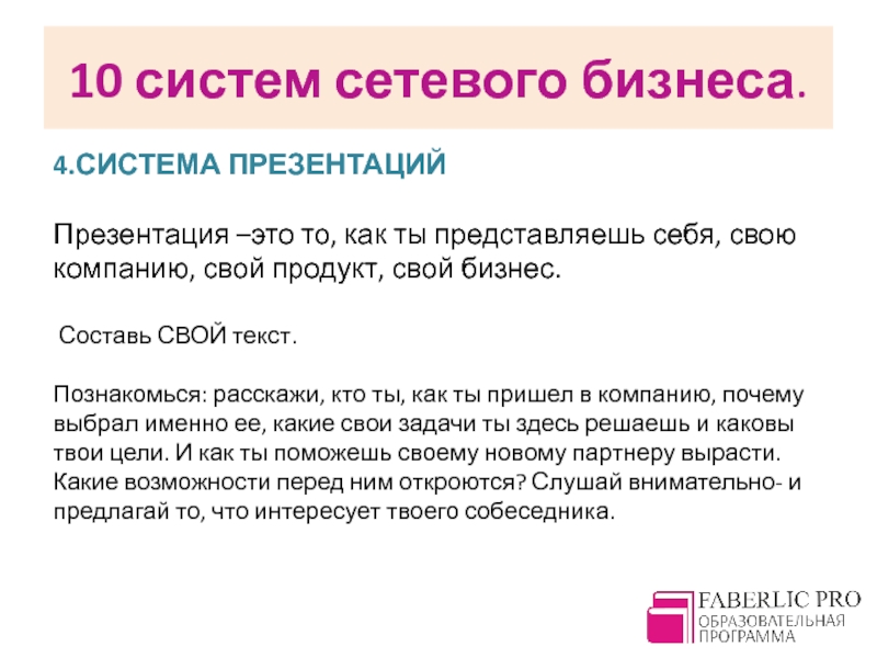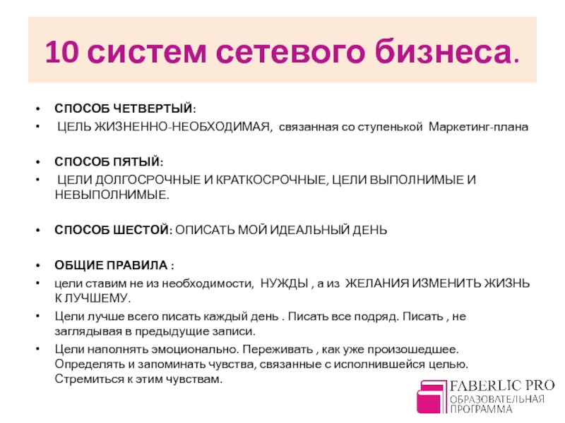 зарабатывать серьезные деньги. Выделяйте специальное время для звонков. Определите для себя не только цель звонка, но и результат. Пропишите сценарий звонка и положите перед собой, когда звоните. Я пишу в столбик цифры- сколько звонков я должна сделать ,- и заполняю его результатами. 5 звонков в день –это минимум. Часто получается гораздо больше. И важно: держите связь с лидерами не только первой своей линии. И учите звонить своих лидеров.