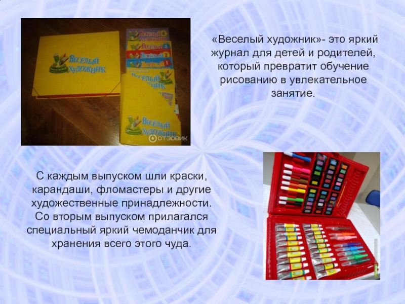 карандаши, фломастеры и другие художественные принадлежности.Со вторым выпуском прилагался специальный яркий чемоданчик для хранения всего этого чуда.